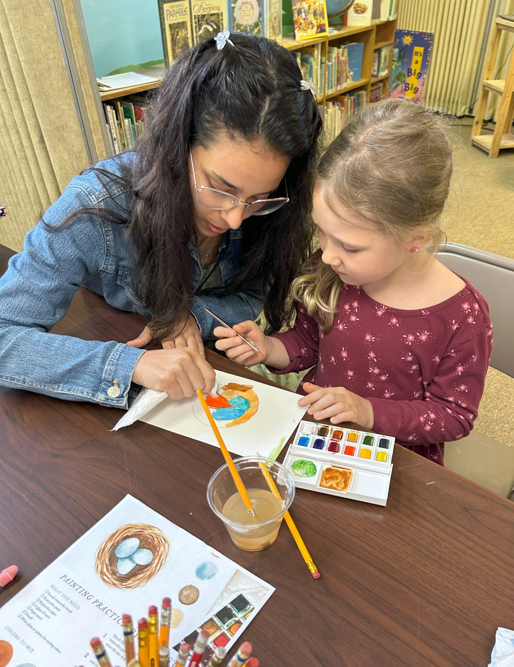 Our time begins with music, prayer, and a Bible lesson. The students then create watercolor paintings as they reflect on the teaching. From there, they head outside to explore and play. Often they bring back forest treasures or mysteries to add to our “nature shelf” in the classroom.